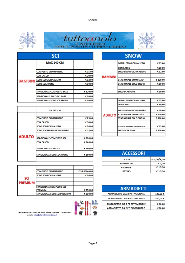 LISTINO PREZZI NOLEGGIO 2025-2026