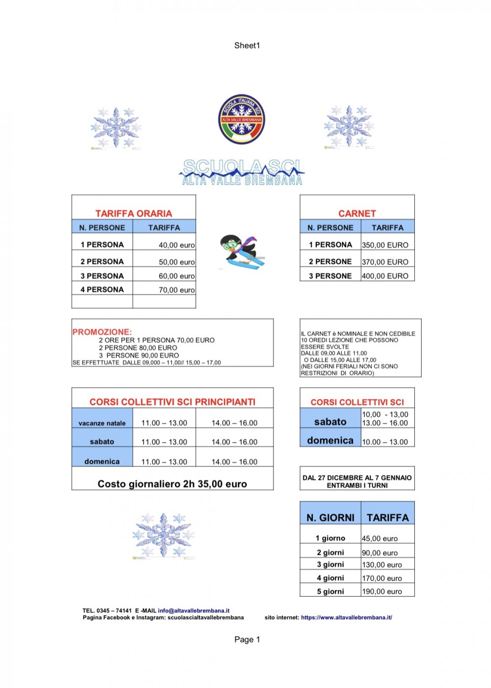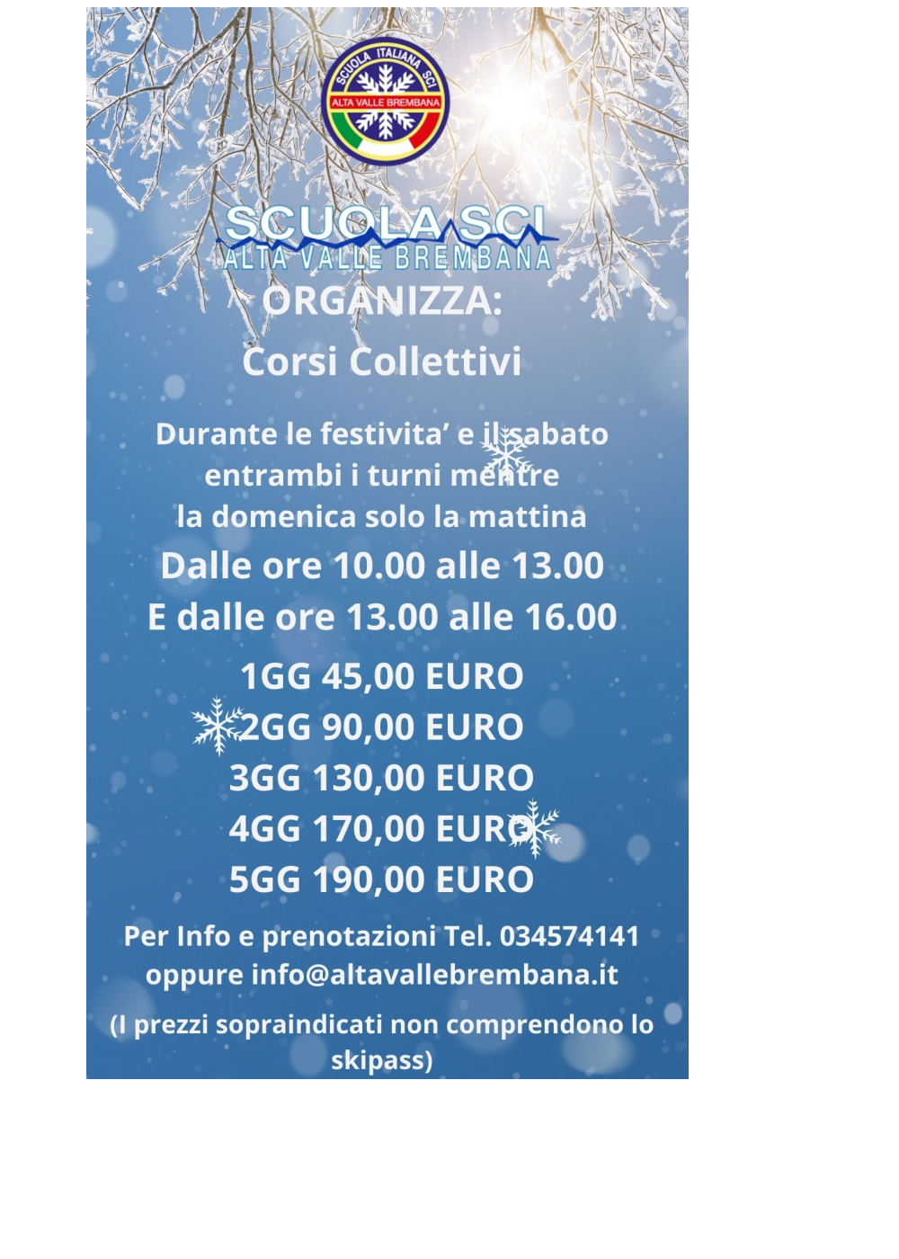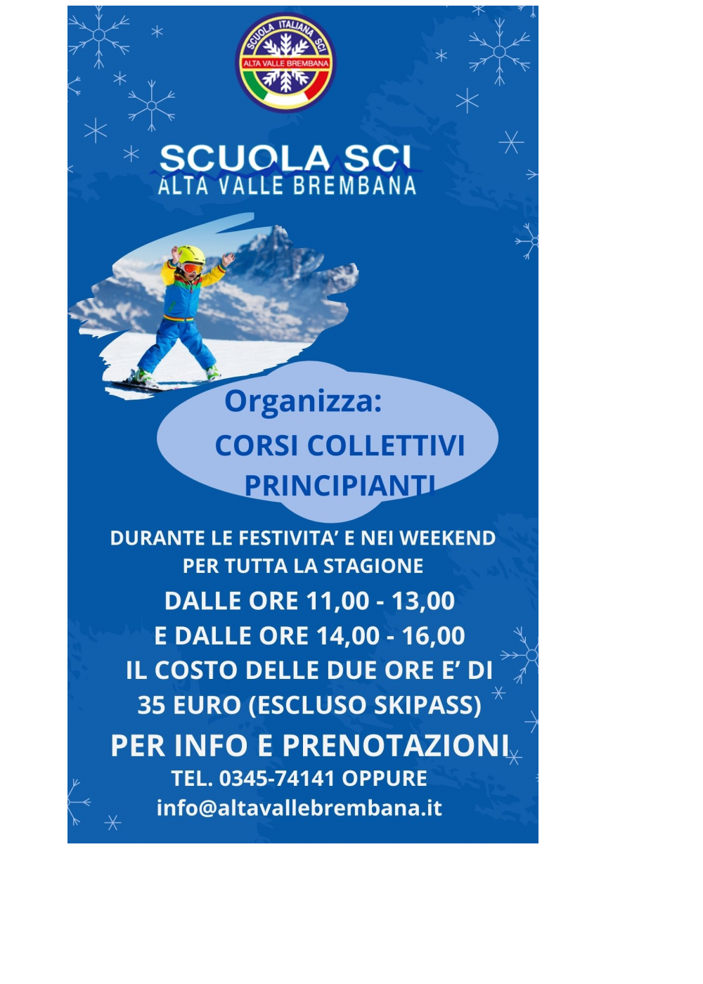 La scuola Sci Alta Valle Brembana i giorni 9-10 e 11 sarà aperta dalle ore 10,00 alle ore 12,00.